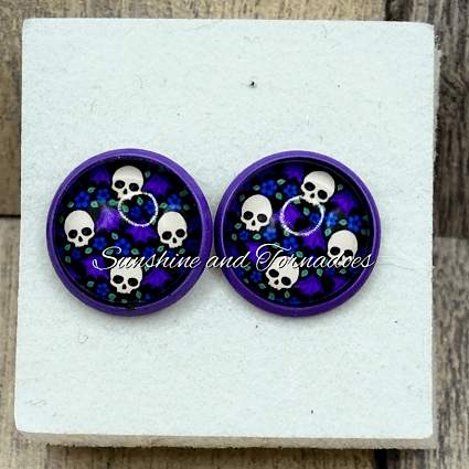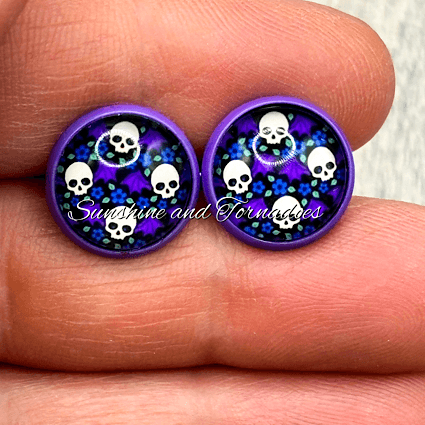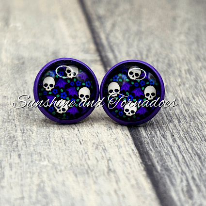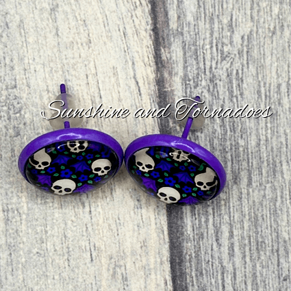 💜💀 Purple Skull Enamel Stud Earrings 💀💜