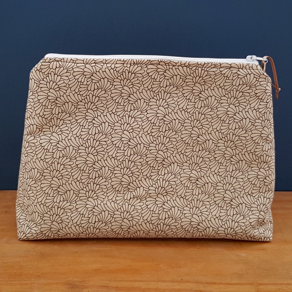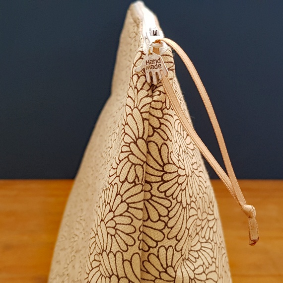 Handcrafted with a delicate all-over leaf pattern in soft beige and cream tones, this pouch brings a touch of natural elegance to your daily routine. The deep brown cotton lining adds a warm contrast, making it just as lovely inside as it is on the outside. Whether you’re packing makeup, toiletries, art supplies, or craft tools, this zipper bag combines practical functionality with timeless design.