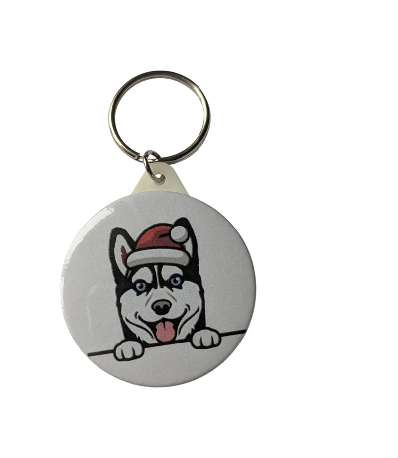 Get into the holiday spirit with this adorable Husky Keyring featuring a Santa hat, perfect for all Husky dog lovers.