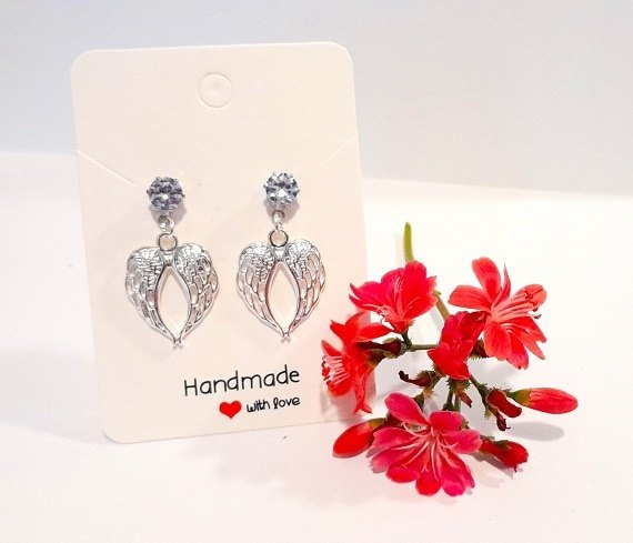 Angel Wing Drop Earrings with 925 silver wires