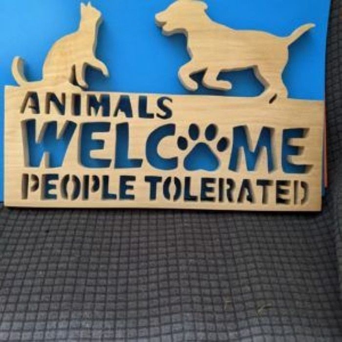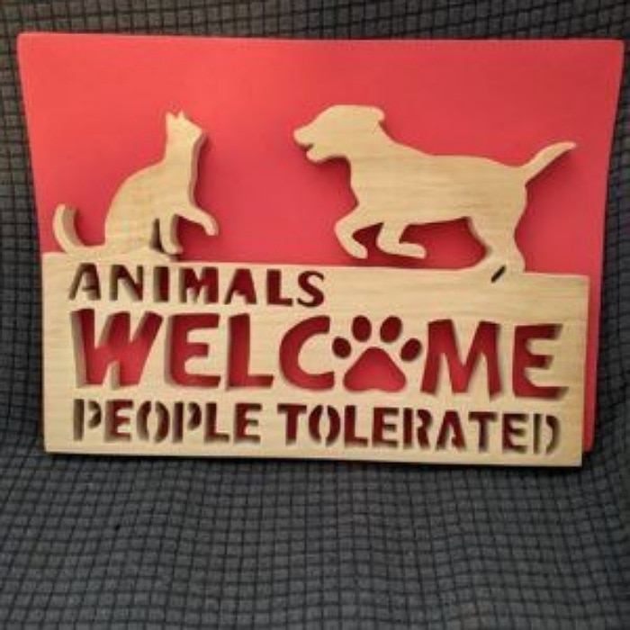 Animals Welcome People Tolerated Wooden Sign – Handcut Scroll Saw Art