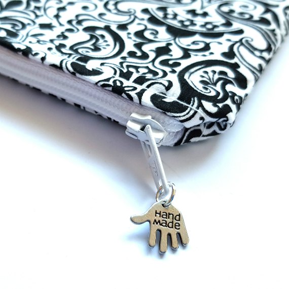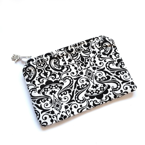Black And White Filigree Zipper Pouch – Handmade Coin Purse Card Holder And Small Essentials Organiser