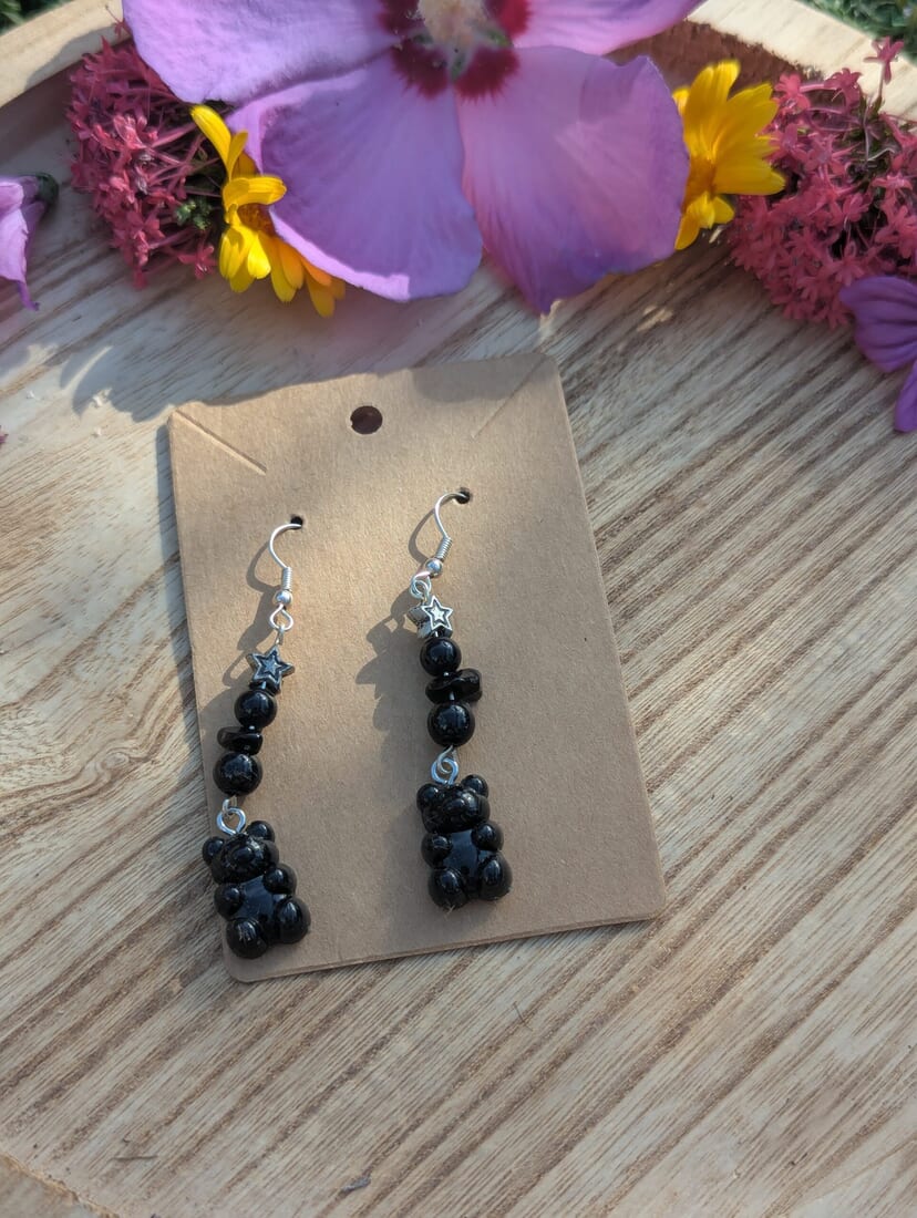 Upgrade your style with these Black Gummy Bear and Silver Handmade Earrings and let your playful side shine!