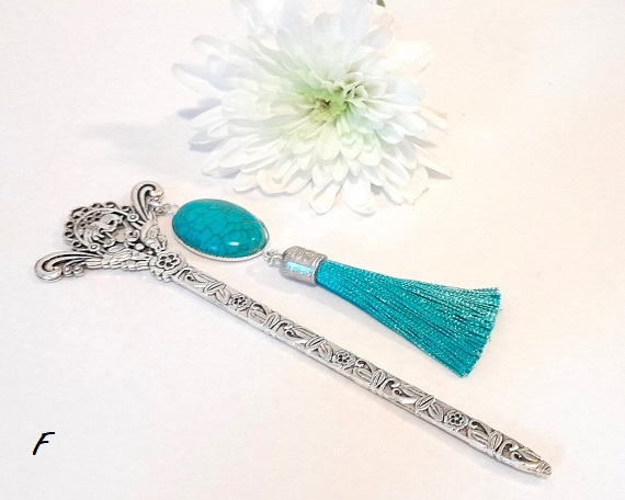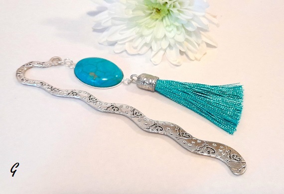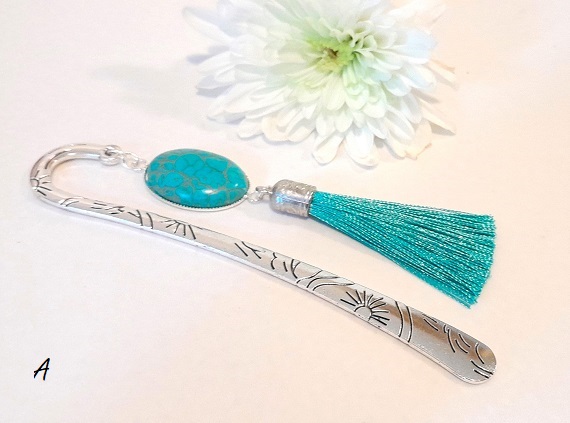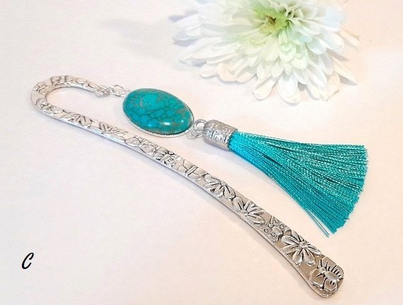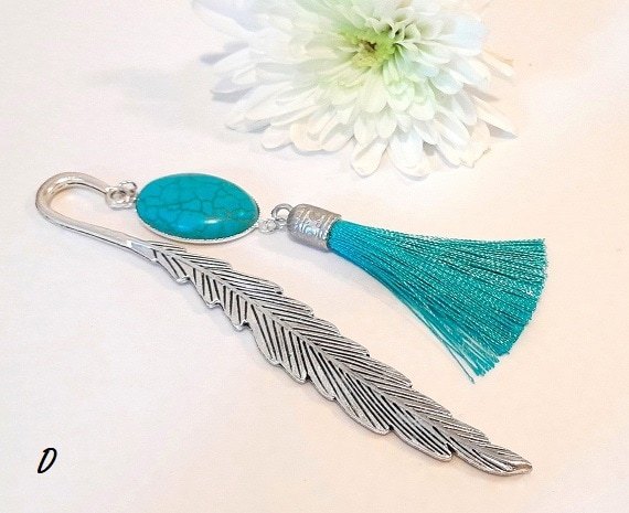 Bookmark with Decorative Turquoise Oval Charm and Tassel 8 Designs