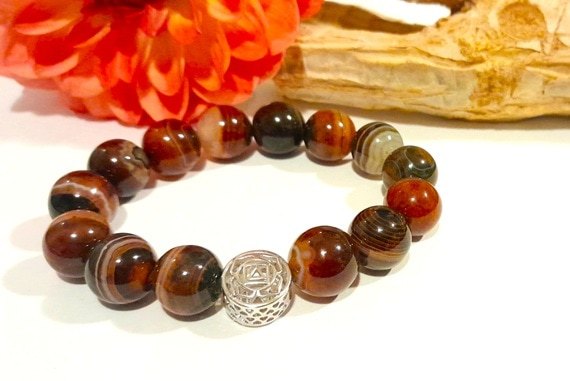 Discover the beauty of my Brown Striped Agate Beaded Bracelet with 12mm beads and a delicate, but solid Sterling Silver Chakra Charm. This stunning bracelet combines natural gemstones with spiritual symbolism for a unique and stylish accessory.
