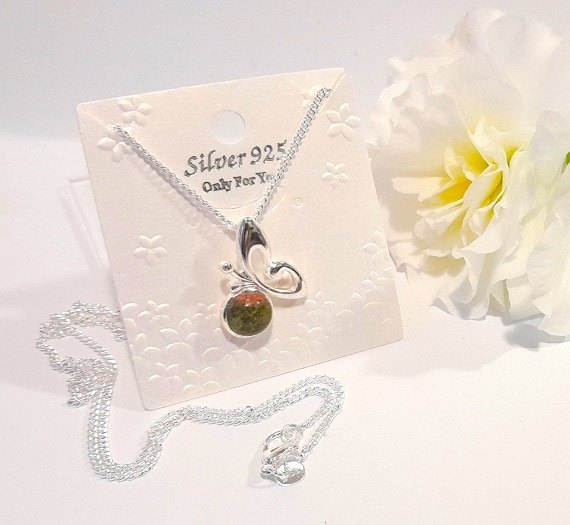 Enjoy your jewellery collection with this Butterfly Unakite Gemstone Necklace and experience the beauty of nature in a unique and stylish way.