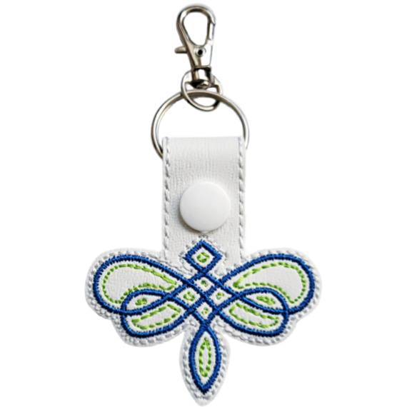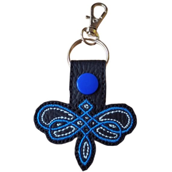 Carry a touch of Celtic wisdom wherever life takes you with this beautifully embroidered Celtic Dragonfly Keyring. The dragonfly, woven in timeless Celtic knots, symbolises transformation, adaptability, and light – a reminder to embrace life’s journey and trust the path ahead.