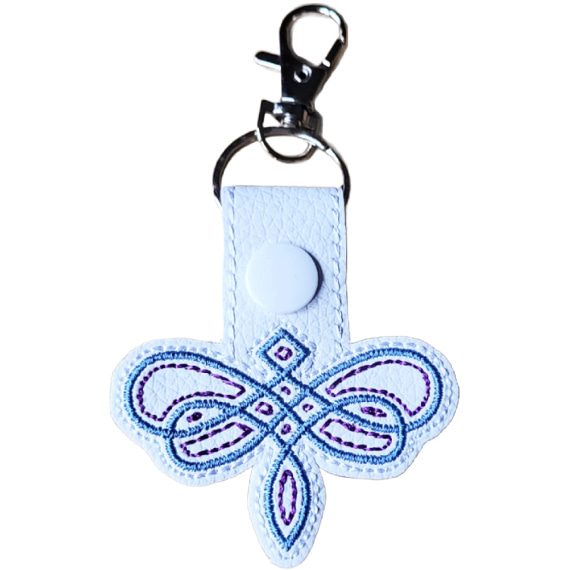 Carry the magic of transformation with this Celtic Dragonfly Knot Keyring. Symbolising freedom, growth, and new beginnings, it is beautifully embroidered on high-quality faux leather – perfect for attaching to your keys, bag, or backpack. A thoughtful gift to inspire light, change, and positivity