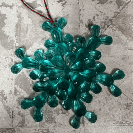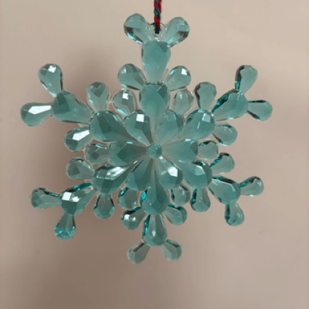 My Christmas Snowflake Tree Decorations come in many different colours and glitters, just click on the dropdown box to choose the colour that best suits your Christmas colour scheme. They measure at approx 11.5cm by 12cm point to point so a lovely size and the colours are transparent so will catch the lights of your tree beautifully (glitter choices are not transparent). I only have one mould so if multiple snowflakes are ordered it may take longer.