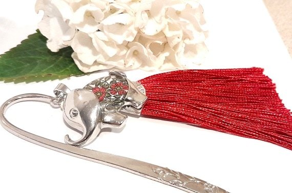 Bring elegance to your reading with the Chunky Elephant Bookmark featuring beautiful red flowers and a matching red tassel. Great fun for young and old alike.