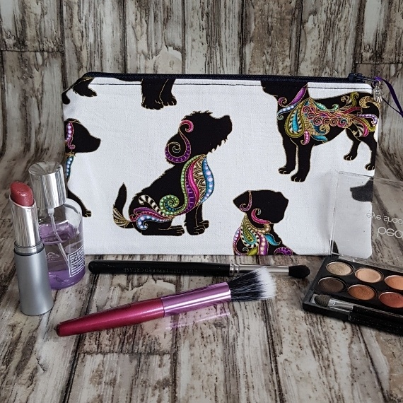 Colourful Dog Print Zipper Pouch – Medium Size Makeup Bag, Pencil Case & Travel Organizer for Dog Lovers