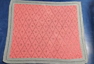 This handmade crochet blanket features a beautiful diamond pattern, perfect for keeping your little one cozy. Made with 100% recycled cotton yarn in the colours Grey Jay and Pink Dusk, this blanket is not only soft but also eco-friendly. Measuring approximately 43×39 inches, it is ideal for a baby cot, beginner bed, or as a lovely lap blanket.