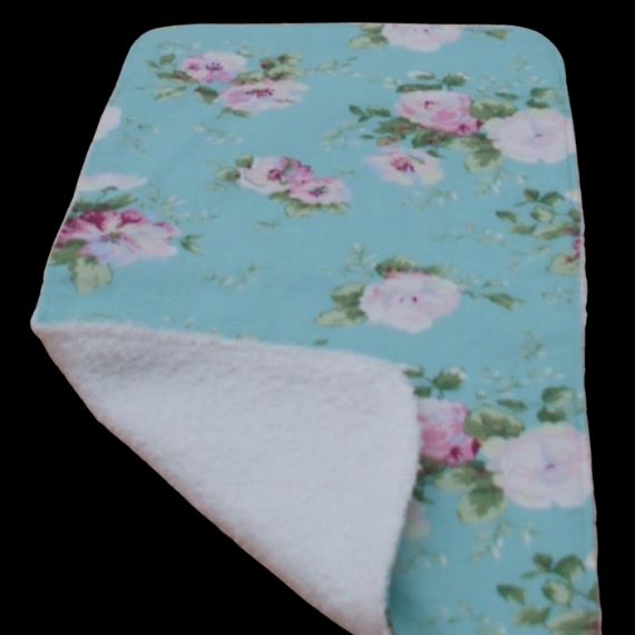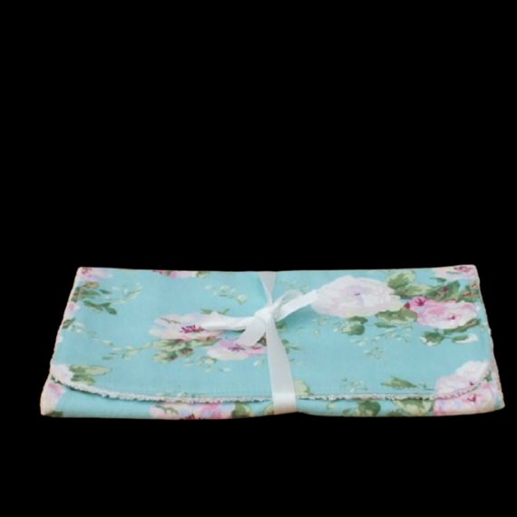Cute Baby Girl Burp Cloth – Turquoise Blue with Pink and Blue Flowers