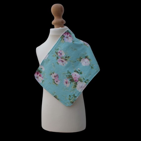Keep your baby girl clean and stylish with this 100% cotton burp cloth featuring a charming turquoise blue background adorned with pink and white flowers with green leaves. The white towelling backing provides excellent absorbency. Measuring 8 inches wide and 15 1/2 inches in length, this burp cloth is perfect for everyday use.
