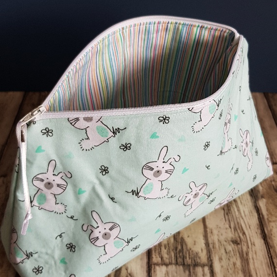 Handmade with quality cotton fabric and fully lined with a multicoloured stripe interior, this bag is as delightful on the inside as it is on the outside. Whether you’re storing makeup, toiletries, stationery, or craft supplies, this bag keeps everything neat and accessible. Lightweight and perfectly sized, it’s great for travel, school, gifting, or simply staying organised.