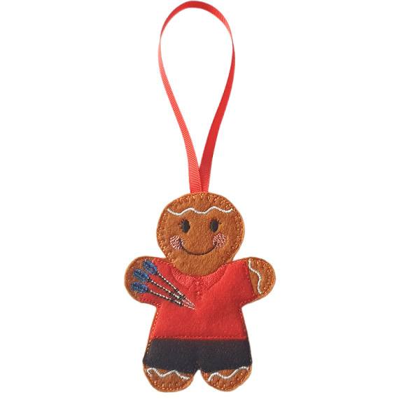 Say hello to this cheerful Darts Player Gingerbread Character, ready to bring charm, colour, and a playful nod to the world of darts. Holding three tiny felt darts and dressed in a smart little dart shirt, this adorable felt figure is perfect for darts lovers, pub-league players, and anyone who enjoys quirky, characterful decor.