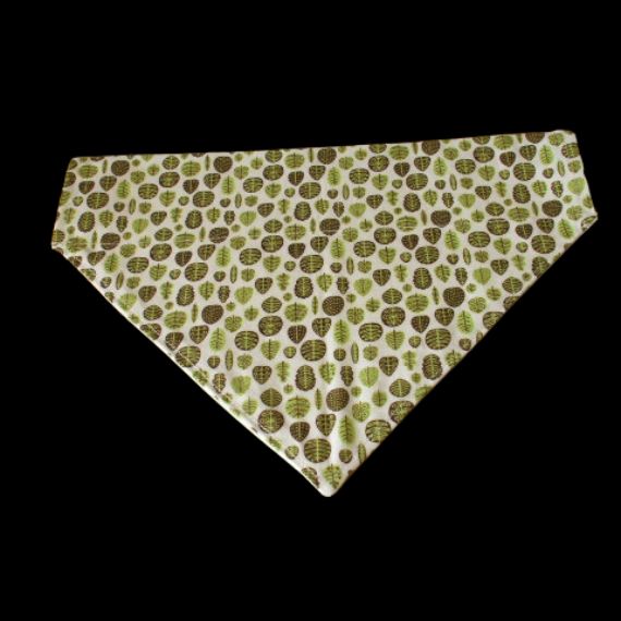 Add a touch of nature to your furry friend’s wardrobe with this charming dog bandana. Made with 100% cotton fabric, this bandana is not only stylish but also comfortable for your pet. The pale green color with a leaf design bone shape applique on one side and an all-over leaf design in shades of green on the reverse side offers versatility in styling.