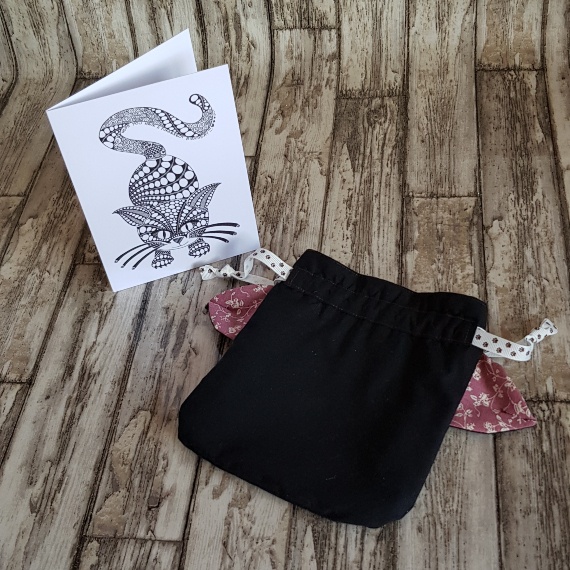 Add a playful twist to your gifting with this eco-friendly reusable gift bag, designed especially for cat lovers! Handmade with soft black fabric and lined floral kitty ears, this unique drawstring pouch doubles as adorable packaging and a reusable keepsake.