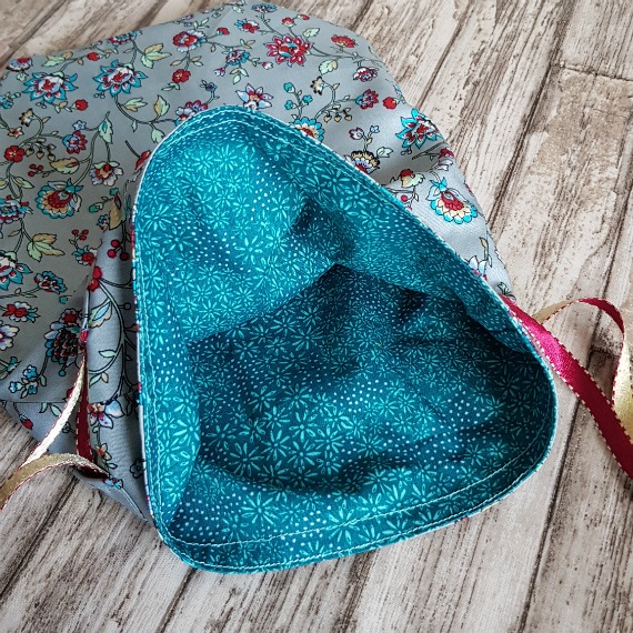 Drawstring closure with satin ribbon ties