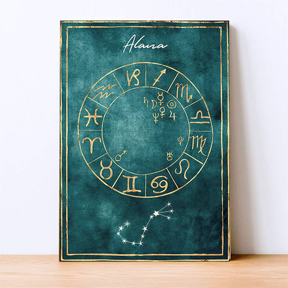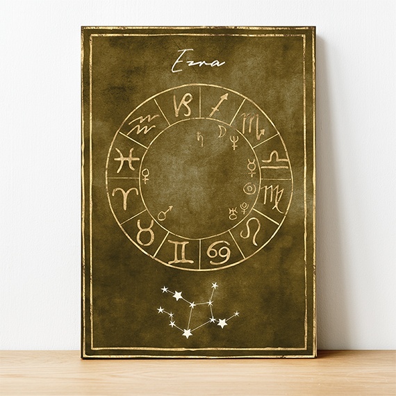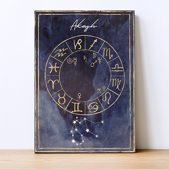 Enhance your space with a stunning customized Astrology chart featuring a gold design on a richly coloured background. Each of the 4 elements is represented by a unique colour, creating a harmonious and elegant display. Personalize the chart with the recipient’s name (the font can be altered if you wish). The constellation adds a touch of celestial beauty to this thoughtful gift.