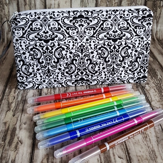 Sleek, stylish, and versatile – this monochrome filigree zipper pouch is a must-have accessory for anyone who loves a touch of class in their daily organisation. The timeless black and white damask-style print brings a sophisticated flair, while the vivid aqua blue lining adds a fun and unexpected twist inside.