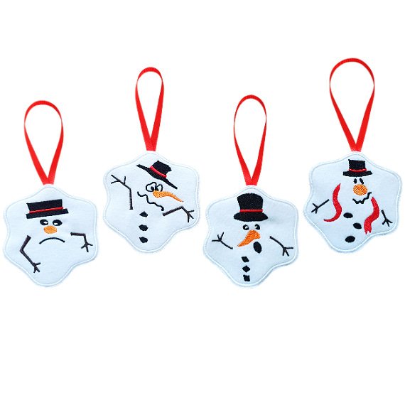 Embroidered Melting Snowman Ornaments – Set of 4