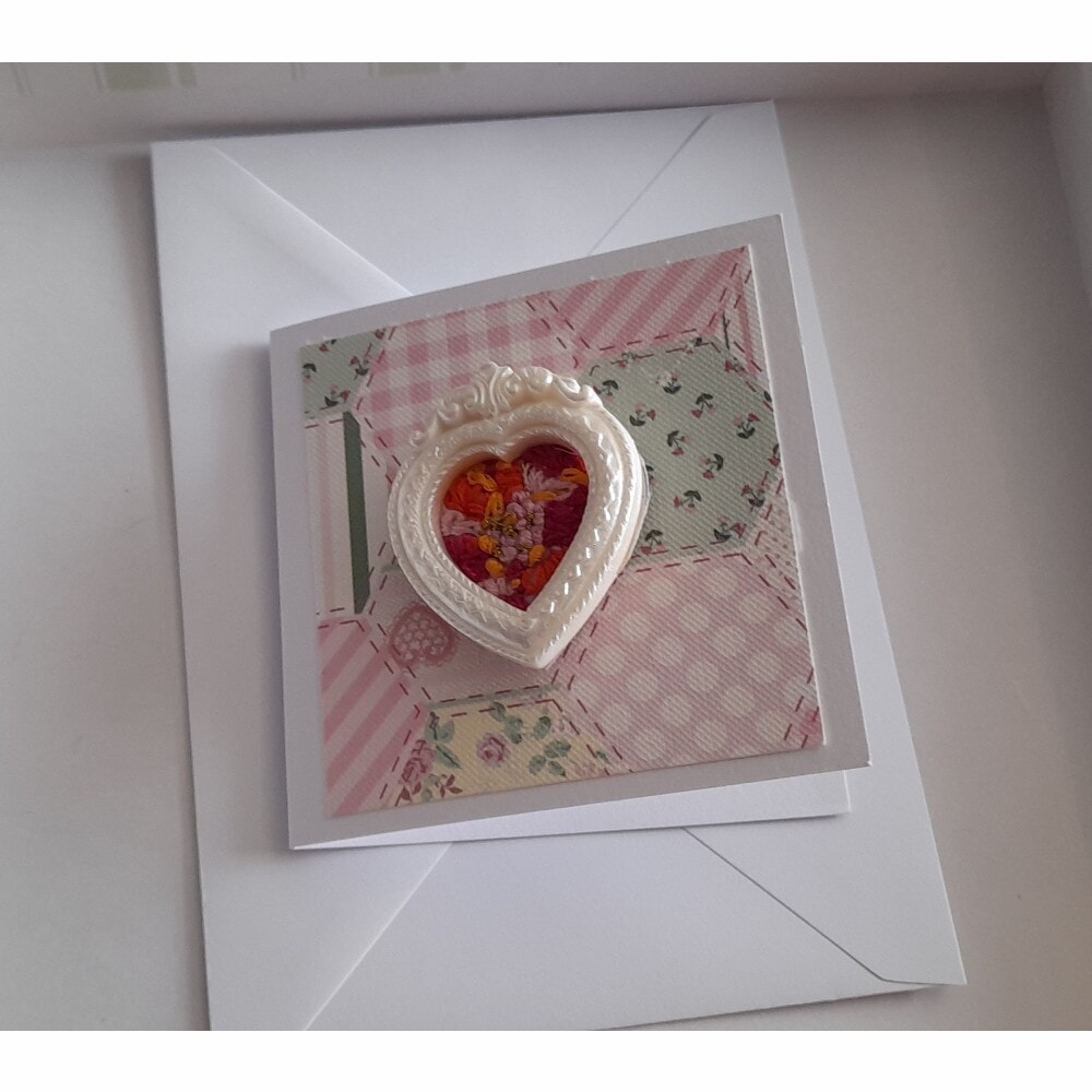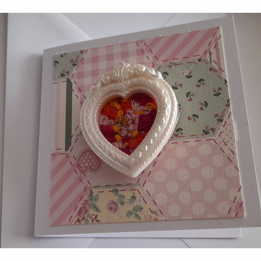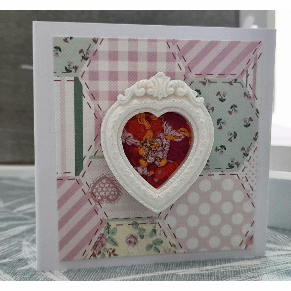I embroidered this Hawthorn floral embroidery, framed it in this mini frame, attached a magnet to the back of it, and placed it with double sided sticky tape onto this pretty greetings card I made.
