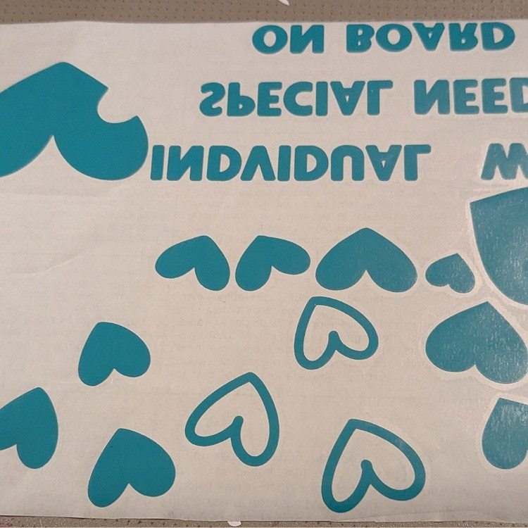Get this unique green car sticker designed for individuals with special needs, featuring hearts and the message ‘An Individual with Special Needs on Board’. Measuring approximately 28 x 19 cm, this sticker is made to be placed on the inside of the window, ensuring visibility and durability, this is the reason it looks back to front once applied it will be the correct way. Easily removable by gently heating with a hair dryer. Customizable in different colors to suit your preferences. Contact us for other sticker designs tailored to your needs.
