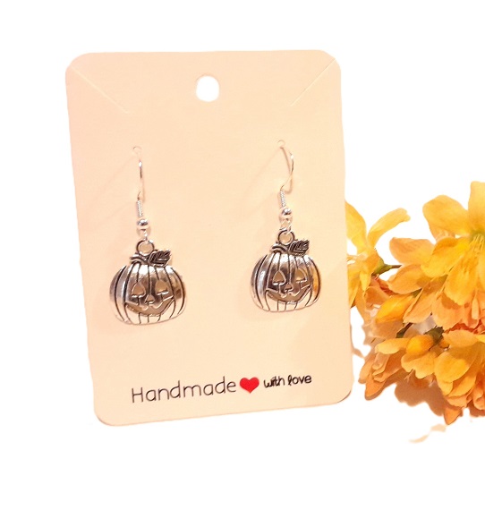 Add a touch of spooky fun to your Halloween ensemble with these charming Pumpkin Drop Earrings featuring 925 silver wires. Perfect for festive celebrations or adding a whimsical twist to your outfit.
