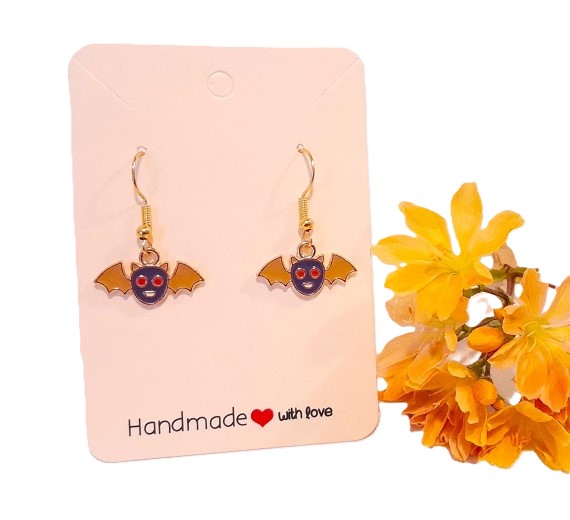 These earrings are not only perfect for Halloween but also make a great gift for anyone who loves unique jewelry pieces. Add a playful twist to your accessories collection with these Purple and Gold Bats Drop Earrings!