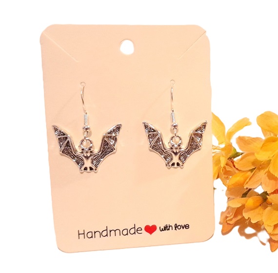 Get into the Halloween spirit with these spooky Vampire Bats Drop Earrings featuring 925 silver wires. Perfect for adding a touch of creepy charm to your outfit.