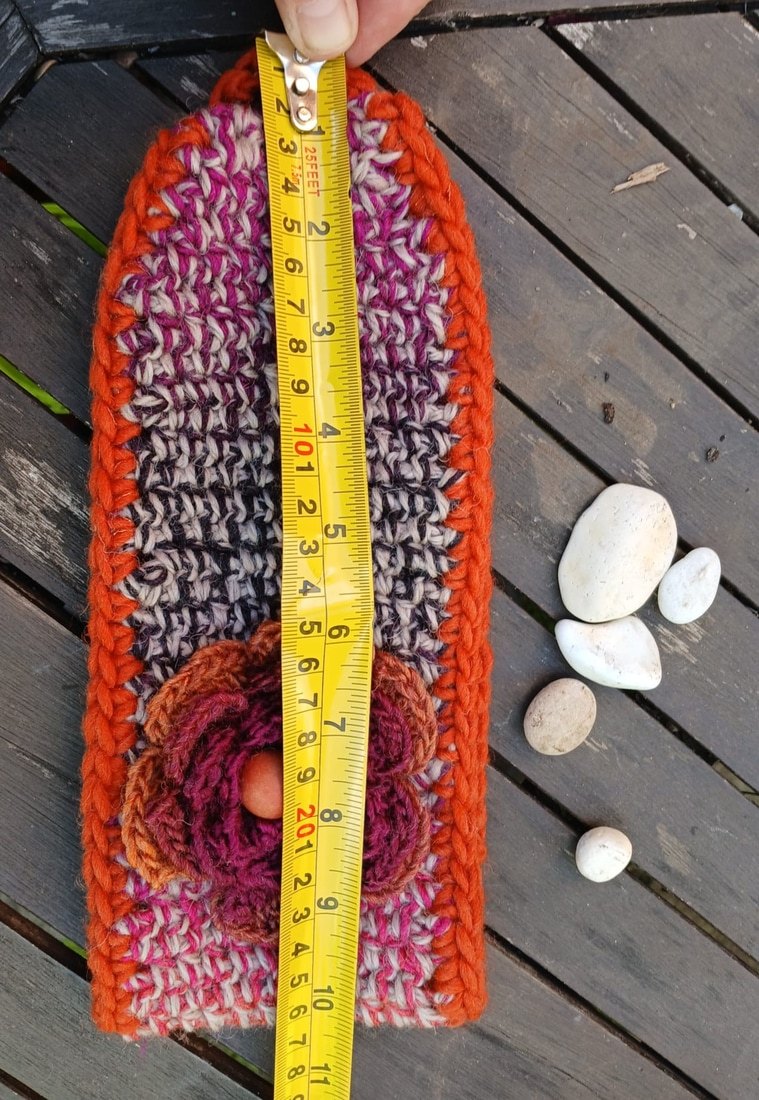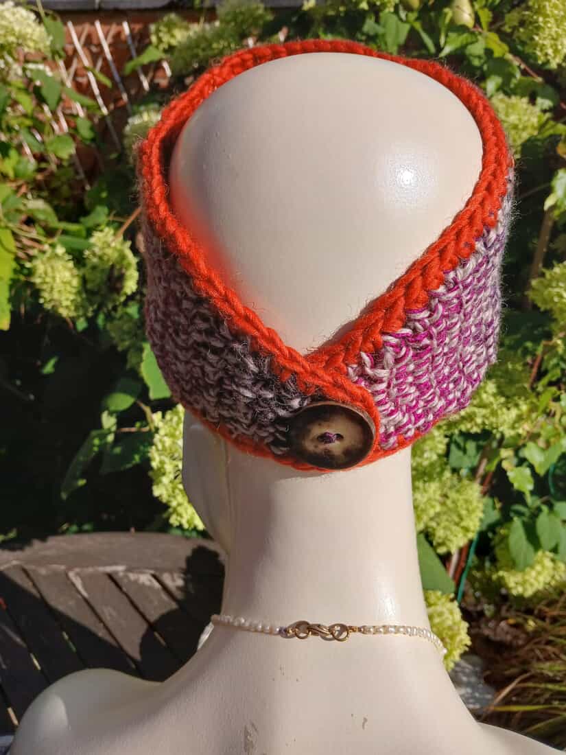 A beautiful hand crocheted headband/ ear warmer in a combination of varigated orange and purple acrylic/ wool yarn.