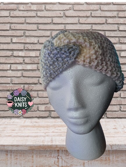 Hand Knitted Twisted Design Ear Warmer in Chunky Yarn