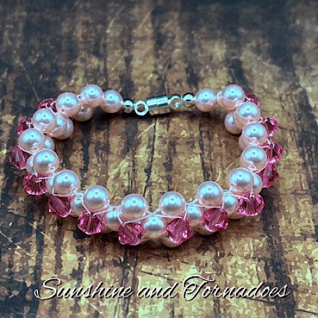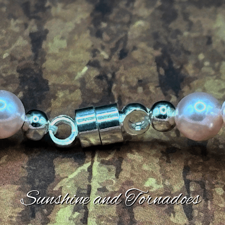 The Right Angle Weave design showcases the beauty of the blush pink Pearl Beads, enhanced by the sparkle of complementing Czech Glass Bicone Beads. The Silver Plated magnetic Barrel Clasp not only adds a touch of glamour but also ensures easy wearability for those who struggle with dexterity and fine motor function.