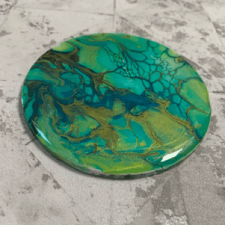 My handcrafted fluid art resin coasters are meticulously crafted to bring beauty and functionality to your living space. Each coaster features one-of-a-kind fluid art designs, making them a conversation starter and are made with premium resin which gives a crystal clear top coat, these coasters are durable and long-lasting.