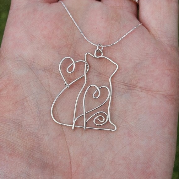 Personalised Heart Kitten Pendant: Wire Kitty Necklace: The Perfect Gift for Cat Lovers: