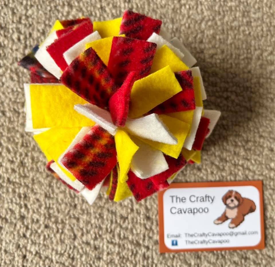 I started making enrichment toys for our puppy ‘Monty’ as a way to refocus. It was an activity I could do sitting down, in very short blocks of time (to limit any impact on my health) and I got such a lift from seeing him happily playing with the finished product! I made gifts for pets of friends and family, then treat mats for other pups at Monty’s training class and soon word spread and ‘The Crafty Cavapoo’ was born! 😊