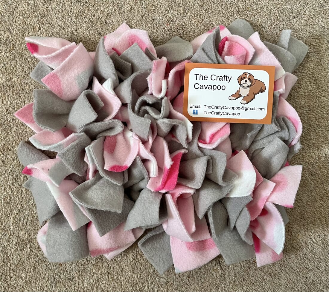 I started making enrichment toys for our puppy ‘Monty’ as a way to refocus. It was an activity I could do sitting down, in very short blocks of time (to limit any impact on my health) and I got such a lift from seeing him happily playing with the finished product! I made gifts for pets of friends and family, then treat mats for other pups at Monty’s training class and soon word spread and ‘The Crafty Cavapoo’ was born! 😊