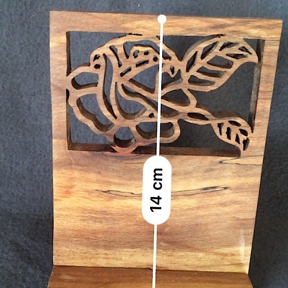 Display your business cards in style with our unique floral wood business card holder, perfect for craft fairs and events. Handcrafted from real wood using a scroll saw, each piece is carefully cut and designed for a one-of-a-kind look.