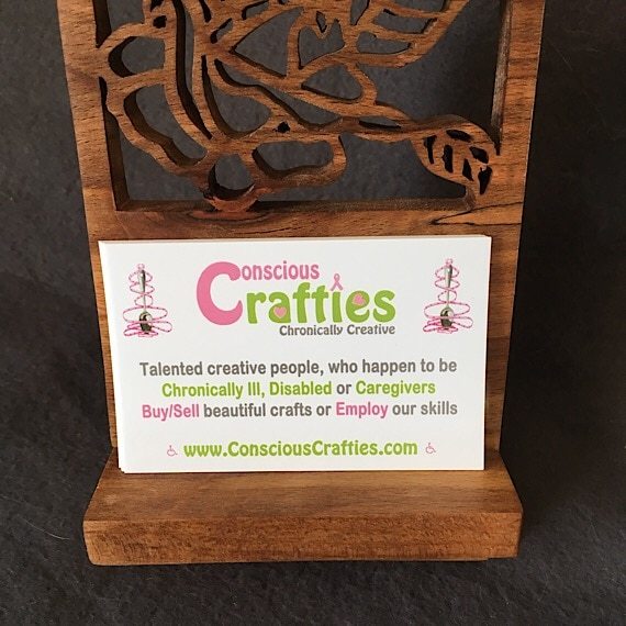 Handcut Floral Wood Business Card Holder for Craft Fairs