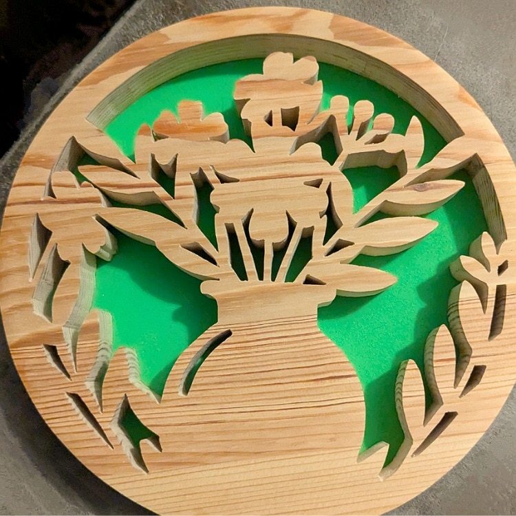 - Handcut pine flower wall art