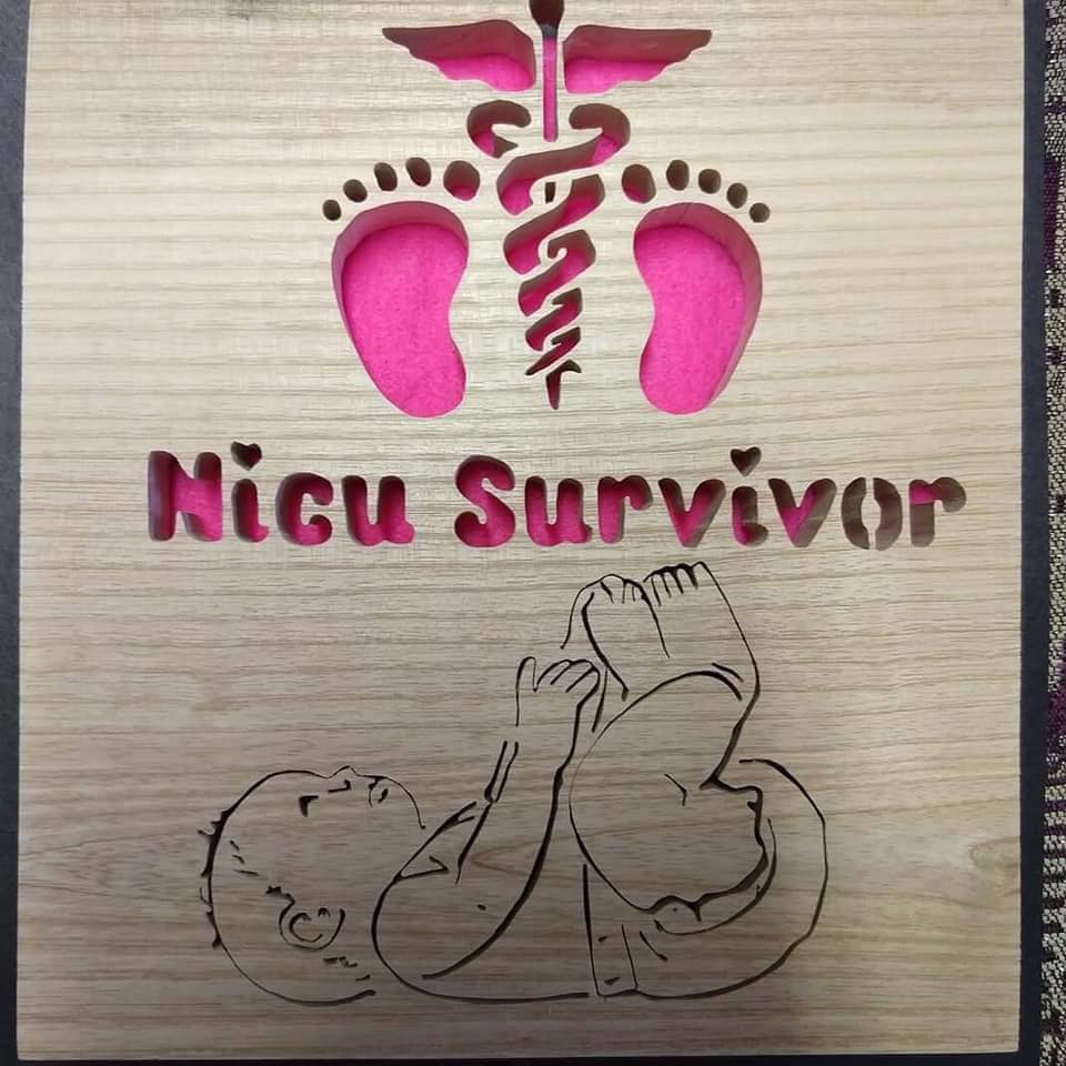 Handcut Wooden Art Picture: NICU Survivor in Pink or Blue – A Heartfelt Tribute