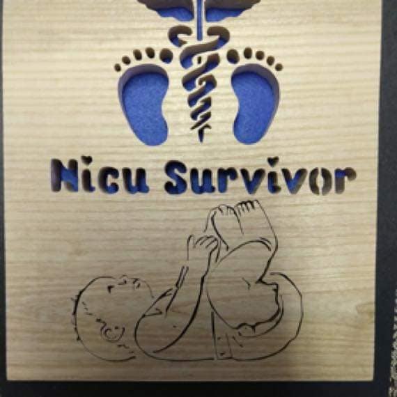 This unique handcut wooden art picture features a NICU survivor in either pink or blue. It is the perfect addition for parents of NICU babies or as a thoughtful gift for someone who has gone through a similar journey.