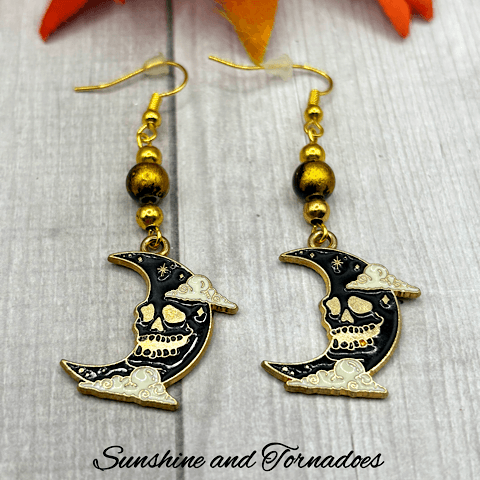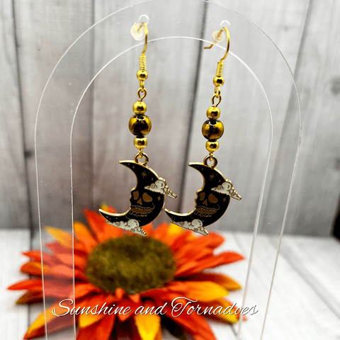 Handmade Creepy Moon Earrings. Handmade Halloween Jewellery.