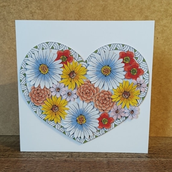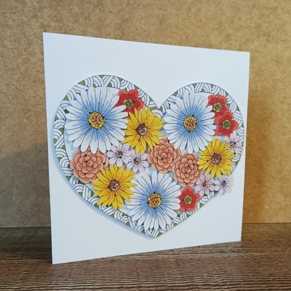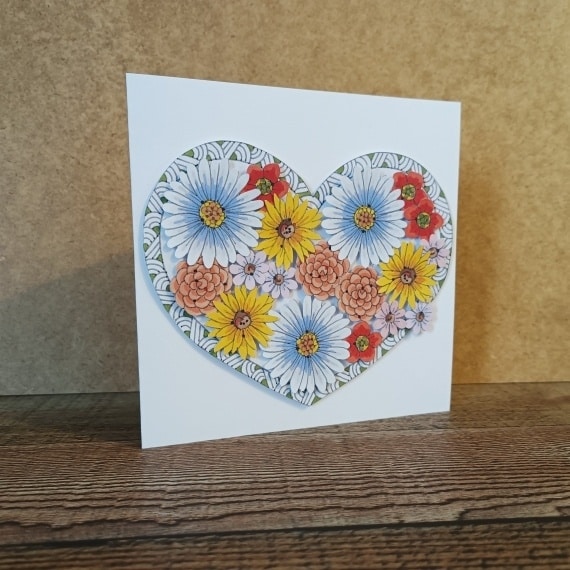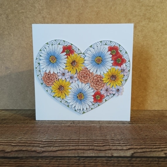 Express your love, kindness and appreciation with my beautifully handmade flower-filled heart card featuring a large heart with pretty lined border filled with absolutely gorgeous flower blooms! This card is perfect for gifting to friends and loved ones and the simple but beautifully effective design speaks for itself with no extra words needed. You can of course add a small greeting to the front to add that extra special personal touch.