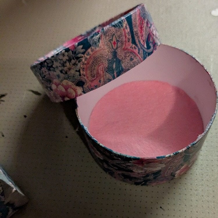 Handmade Floral Decoupage Small Box with Pink Felt Lining