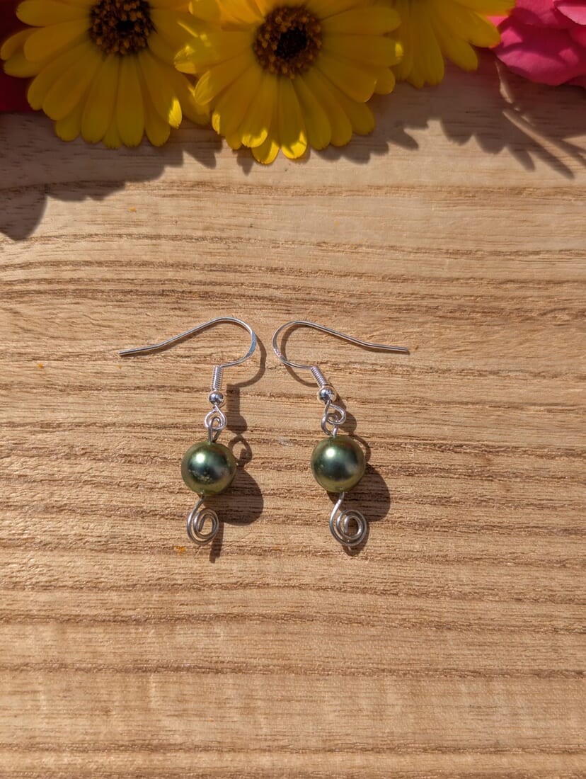 Elevate your style with these exquisite handmade earrings featuring a stunning green bead and intricate spiral wire design. Perfect for adding a touch of elegance and uniqueness to any outfit.