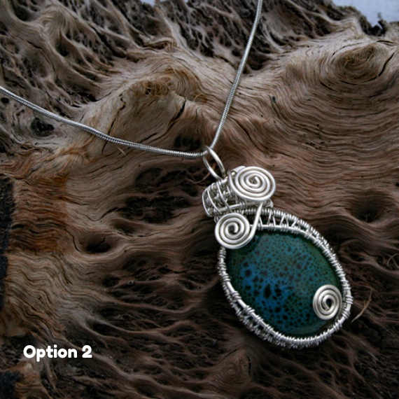 Handmade Green Ceramic Pendant Necklace – Wirework Wrapped One-of-a-Kind Artisan Jewellery