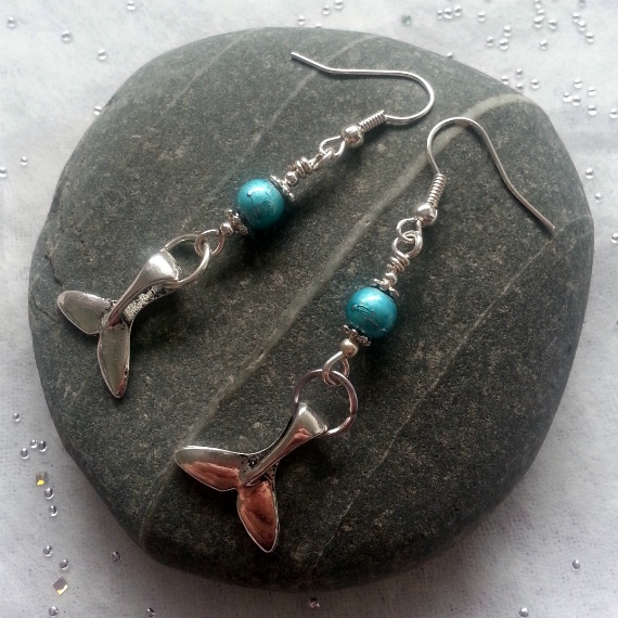 Handmade Mermaid Tail Drop Earrings – Ocean-Inspired Whale Tail Dangle Jewellery in Silver And Turquoise
