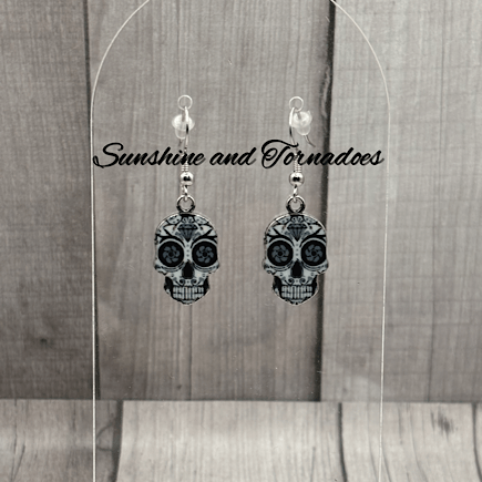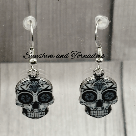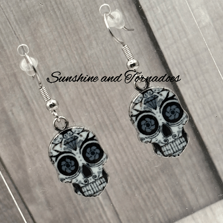 Handmade Monochrome Patterned Skull Charm Earrings.